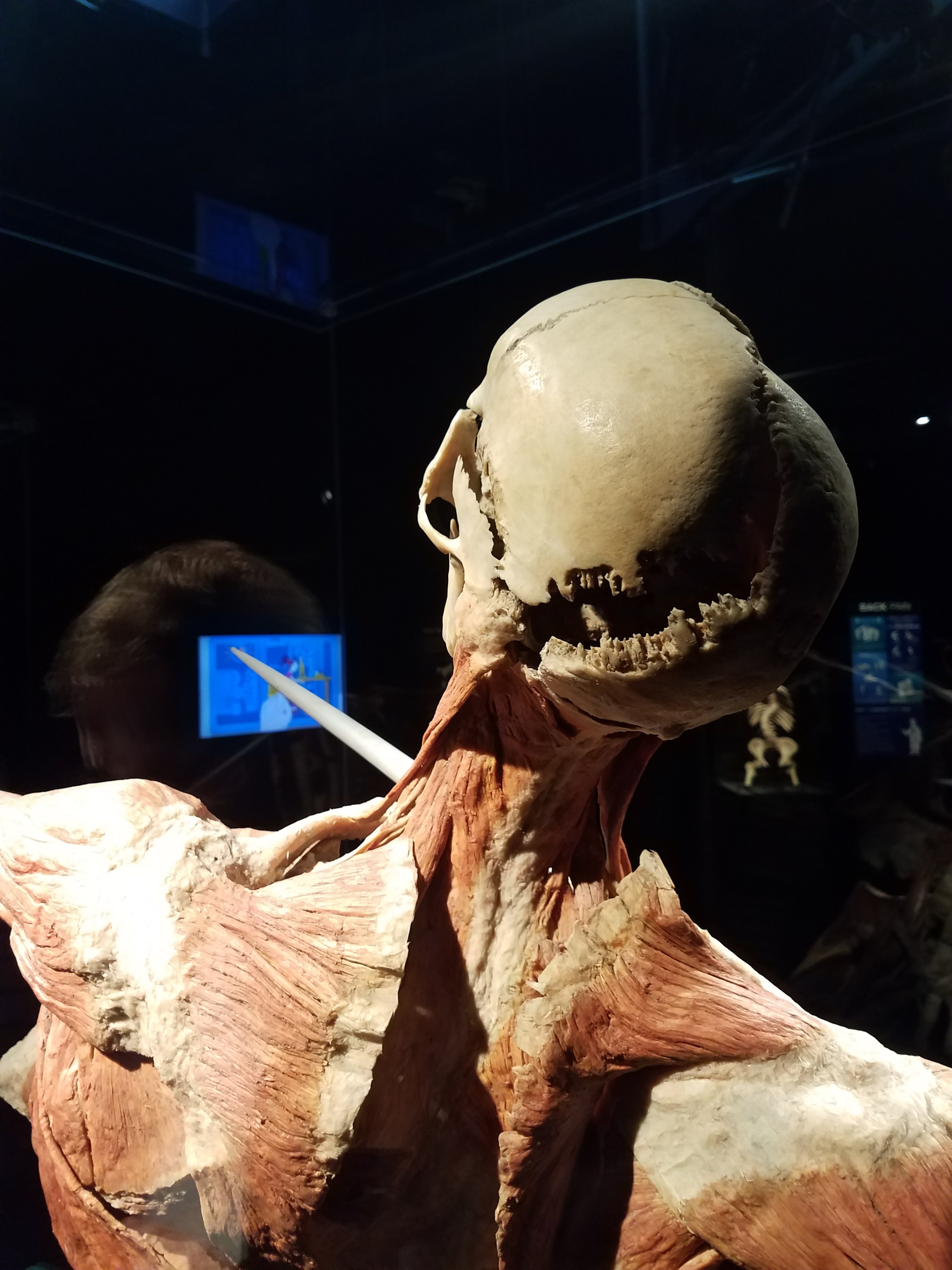 wandering in the dimly lit room with black covered walls and black lined cases that makes the bright spotlights make every detail more dramatic. I started to look down at my own body looking at what would be right under the surface. Being is sports my whole life I kept looking at different areas that I have injured before and seeing how the body is woven together. Such a fragile inter working that we often take for granted and abuse. Treating your body right is the ticket to a quality long life.