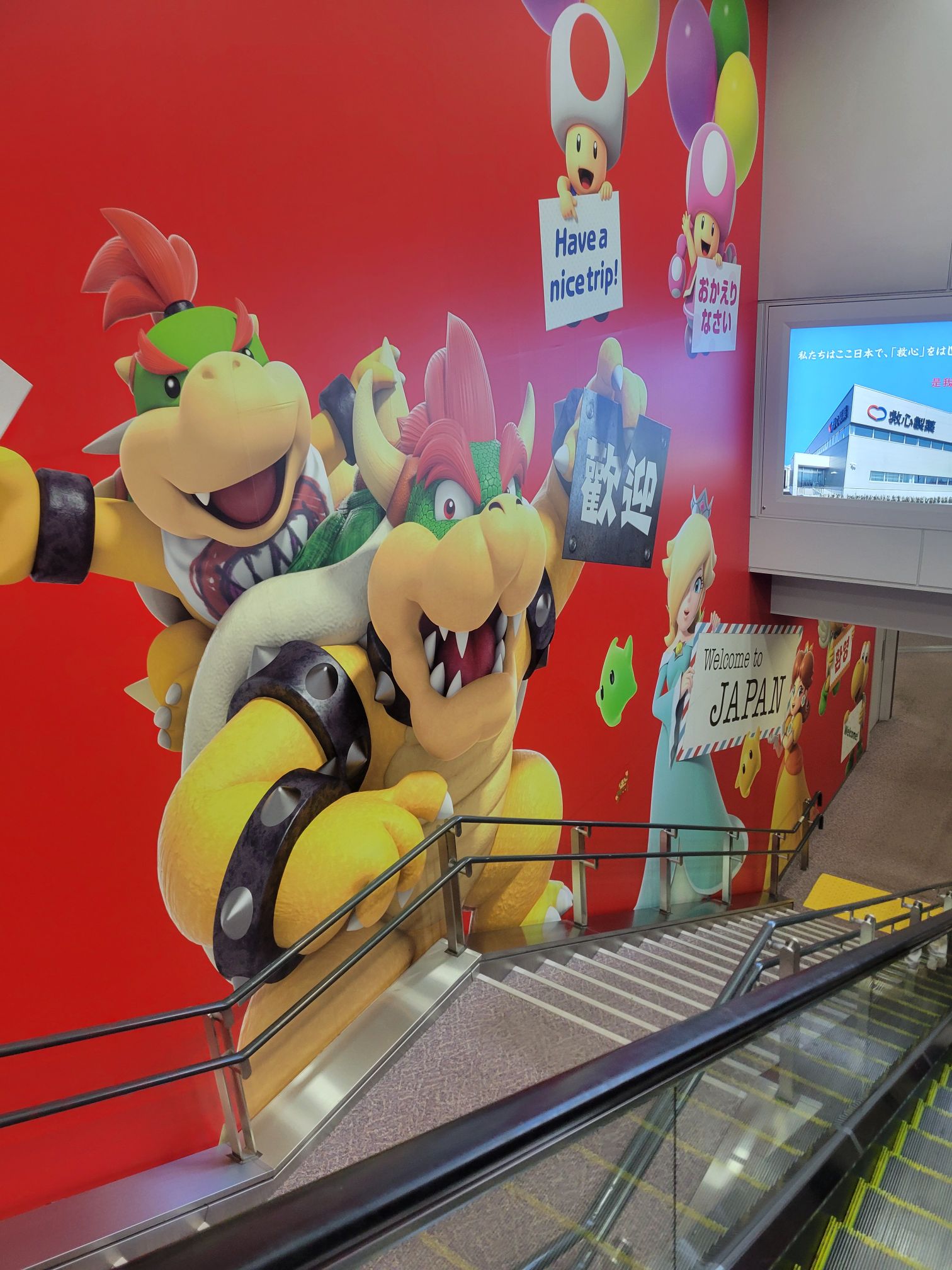 Stepping into the airport, you are immediately confronted by Japanese culture. Not the old tradition culture, but the bright colors and lights of the pop and tech Japanese culture. Walking out of customs, you are greeted by Mario and the gang on the escalator.